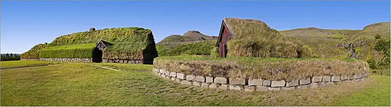 Þjóðveldisbærinn Stöng (Icelandic: [ˈθjouðˌvɛltɪsˌpaiːrɪn ˈstœyŋk], Stöng Commonwealth Farm) is a reconstructed viking-era farmstead in Iceland, located in the Þjórsárdalur valley near road 32 in Árnessýsla county. It is a historically accurate reconstruction of the three buildings, including a longhouse, which stood 7 km to the north at Stöng; the farm is believed to have been buried under volcanic ash in 1104 following the eruption of the volcano Hekla.