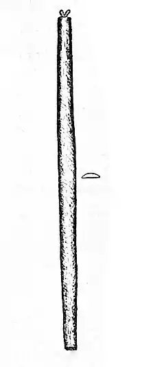 The ʻūkēkē is a musical bow made of koa wood, 16 to 24 inches long and about 11⁄2 inches wide with two or three strings fastened through and around either end, tuned to an A major triad. Prior to the introduction of steel strings, gut or sennit (coconut fibre) was used.