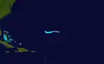 A tropical wave exited western Africa and emerged into the Atlantic Ocean on September 15. It moved slowly westward until September 22, when a high-pressure area caused it to accelerate west-northwestward towards the Leeward Islands.[26] By the next day, the wave interacted with a cold-core low, producing an area of convection. As the system moved over warmer waters, a surface low formed on September 26.[48] As a result of gale-force winds being observed, the system was then designated as Tropical Storm Greta. However, the storm did not strengthen, despite favorable conditions, and as a result, it was described by the National Hurricane Center (NHC) as a "bomb that did not explode".[1][49]