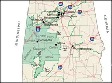 Voting in Alabama, like in other states of the Deep South, was heavily polarized by race. According to exit polls, 98% of black Alabamians voted Democratic while 88% of white Alabamians voted Republican.[19] Obama's 12 percent showing among white Alabamians was easily his worst in the nation, and prevented him from having any realistic chance of carrying the state.[20] Ultimately, McCain won by running up massive landslides in the state's suburban areas; several Birmingham, Montgomery and Mobile suburbs gave McCain over 70 percent of the vote. The old-line Dixiecrats in these areas began splitting their tickets as early as the 1940s; apart from Carter, some of these areas haven't supported a Democrat for president since Adlai Stevenson II in 1952.