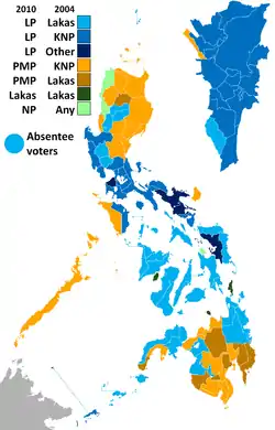 ![]() Map showing the official results taken from provincial and city certificates of canvass. The inset shows Metro Manila. | |||||||||||||||||||||||||||||||||||||||||||