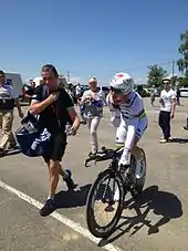 During May's Giro d'Italia, Sylvain Georges tested positive for the vasodilator heptaminol,[14] after the seventh stage; his positive test was the second by a rider from the Ag2r–La Mondiale squad in the space of a year, after Steve Houanard tested positive for the glycoprotein hormone erythropoietin (EPO) in an out-of-competition test in September 2012.[15] Since the team was a member of the Mouvement pour un cyclisme crédible union, a second positive test meant that, according to the union's regulations, they had to stop racing for eight days.[16] The team voluntarily withdrew from the Dauphiné, avoiding a financial penalty[17] which could have been incurred by the team for failing to compete in a World Tour event, against UCI regulations. As a result, the peloton was reduced to the following twenty-two teams.[18]