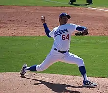 The Dodgers on November 17, acquired minor league outfielder Kyle Jensen from the Miami Marlins for a player to be named later or cash considerations.[25] (Single-A pitcher Craig Stem was sent to Miami to complete the deal on December 15.)[26] On November 20, they acquired relief pitchers Joel Peralta and Adam Liberatore from the Tampa Bay Rays in exchange for Jose Dominguez and minor leaguer Greg Harris.[27] On November 22, the Dodgers acquired right-handed pitcher Mike Bolsinger from the Arizona Diamondbacks in exchange for cash consideration.[21] A couple of days later, on November 24, they acquired right-handed pitcher Juan Nicasio from the Colorado Rockies in exchange for a player to be named later or cash.[28] (Double-A outfielder Noel Cuevas was later sent to the Rockies to complete the trade.)[29] On December 2, they added to the outfield depth by acquiring Chris Heisey from the Cincinnati Reds in exchange for pitcher Matt Magill.[30] The Dodgers claimed catcher/first baseman Ryan Lavarnway off waivers from the Boston Red Sox on December 5.[20]