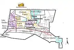 Agoura Hills is called the "Gateway to the Santa Monica Mountains National Recreation Area".[24] The city is unofficially divided into a number of varied districts centered on the modern Downtown area of the city. The most notable of these districts include Morrison Ranch, Downtown, Forest Cove, South End, Malibu Junction, East Agoura, and Old Agoura.
