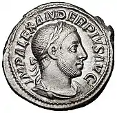 Marcus Aurelius Severus Alexander[1] (1 October 208 – 21/22 March 235), also known as Alexander Severus,[2] was a Roman emperor, who reigned from 222 until 235. He was the last emperor from the Severan dynasty. He succeeded his slain cousin Elagabalus in 222. Alexander himself was eventually assassinated, and his death marked the beginning of the events of the Crisis of the Third Century, which included nearly fifty years of civil war, foreign invasion, and the collapse of the monetary economy.