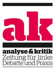 analyse & kritik (ak) (full German title: "analyse & kritik - Zeitung für linke Debatten", in English, analysis & critics - Newspaper for left debates) is a monthly newspaper in Germany. Published in Hamburg it is one of the best known left magazines in Germany. It is published by the Verein für politische Bildung, Analyse und Kritik e.V., with a circulation of 5400 as of December 2019. The newspaper was founded in 1971 by the initially Maoist orientated Communist League (German: Kommunistischer Bund, KB) in West Germany.