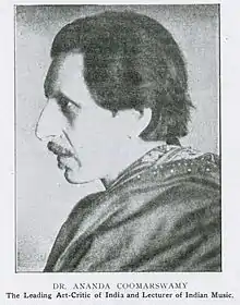 Ananda Kentish Muthu Coomaraswamy (Tamil: ஆனந்த குமாரசுவாமி, Āṉanta Kentiś Muthū Kumāracuvāmi; Sinhala: ආනන්ද කුමාරස්වාමි Ānanda Kumārasvāmī; 22 August 1877 − 9 September 1947) was a Ceylonese metaphysician, historian and a philosopher of Indian art who was an early interpreter of Indian culture to the West.[1] In particular, he is described as "the groundbreaking theorist who was largely responsible for introducing ancient Indian art to the West".[2]