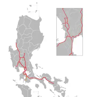 The Southern Tagalog Arterial Road (STAR),[lower-alpha 1] commonly known as the STAR Tollway, is a two-to-four-lane 41.9-kilometer (26.0 mi) controlled-access toll expressway in the province of Batangas in the Philippines. It is operated by STAR Infrastructure Development Corporation (STAR – IDC). The expressway is signed as E2 of the Philippine expressway network, alongside the South Luzon Expressway and unspecified portions of the Skyway. The expressway starts at the interchange with the Pan-Philippine Highway and the South Luzon Expressway in Santo Tomas and runs southward, near Diversion Road, to Batangas City. It passes through the cities and municipalities of Tanauan, Malvar, Lipa, San Jose, and Ibaan.