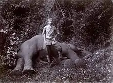 Franz Ferdinand posing in front of a killed elephant, 1893