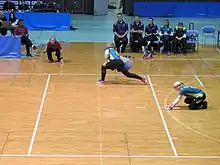 Australia goalball women throwing to Canada women, Copper Box, London 2012 Paralympic Games (Sep 2012).