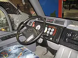 The minibuses in the A8V series were built on the chassis of the Mercedes-Benz Vario O818D. The body structure is made of steel tubes with square and rectangular cross-sections, which are joined by welding. The outer structure, is welded to the frame, and is made of corrosion-resistant materials such as stainless steel and plastic. When compared to the previous model the seat next to the driver has been removed, which makes the driver cab very big.[4] With larger dimensions and better built interior layout the minibus can carry more passengers when compared to the Autosan Solina.[5]