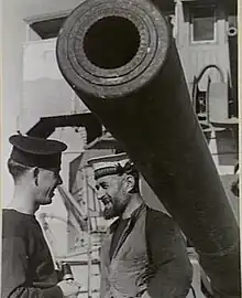 Superfluous at the end of the war, Agincourt was decommissioned in 1921 and her 6-inch guns removed and used for coastal defence, and in 1939 the First World War era British gunboats Aphis and Ladybird each had their two 6-inch Mk VII guns replaced with 2 MK XIII guns, in which capacity they served in World War II.