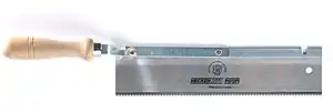 A backsaw is any hand saw which has a stiffening rib on the edge opposite the cutting edge, enabling better control and more precise cutting than with other types of saws. Backsaws are normally used in woodworking for precise work, such as cutting dovetails, mitres, or tenons in cabinetry and joinery. Because of the stiffening rib, backsaws are limited in the depth to which they can cut. Backsaws usually have relatively closely spaced teeth, often with little or no set.