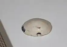 A sample of Miorcani flint from the Cenomanian chalky marl layer of the Moldavian Plateau (approximately 7.5 cm wide)