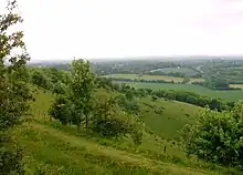 Beacon Hill is near the village of Burghclere and Watership Down, in north Hampshire. The hill's name is derived from the fact that it was one of many Beacon Hills in England and beyond. This hill was once the site of the most famous beacon in Hampshire. It is 261 metres high and has one of England's most well known hill forts on its slopes, visible from the main A34 road which passes close by. From there, outstanding views of the surrounding area and much of Hampshire may be obtained. The site is open to the public and managed by Hampshire County Council. It is an 80.7-hectare (199-acre) biological Site of Special Scientific Interest called Burghclere Beacon[1][2] and a Nature Conservation Review site, Grade I.[3]