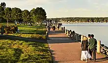 The developed area of Bedford’s shore line is mainly long the Bedford Bay portion of the basin. It consists of a public waterfront boardwalk through a 1 km[11] portion of DeWolf Park and follows along to Lions Park and along Shore Drive. Its eastern shore consists of a "blast buffer zone" that surrounds Canadian Forces Ammunition Depot Bedford; this is the Royal Canadian Navy’s weapons magazine for its Atlantic fleet.