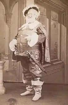 As an actor, DeBar was best known for portraying William Shakespeare's character Falstaff.[10][11][12] In 1878, a statue of Shakespeare was dedicated in Tower Grove Park, St. Louis; on the east face of the monument base is a depiction of DeBar as Falstaff.[13] He was perhaps motivated to explore this character, as he grew corpulent with age.[14]