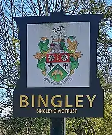 The old Bingley Coat of Arms, on a sign on the road in from Crossflatts