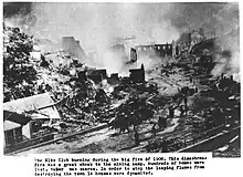 The town's geography and location caused the town to be prone to fires and floods. The Historic District experienced severe flooding in 1886, 1890, and 1908. The 1890 flood saw a 20-foot wall of water sweep through the town one night. The 1908 flood deposited several feet of mud and debris in the post office, and that same year a fire devastated the commercial area of Main Street, causing $500,000 worth of damage. Following these disasters, the town paid for flood abatement systems to be put in place, as well as a public water system to provide for fire-fighting.[5]
