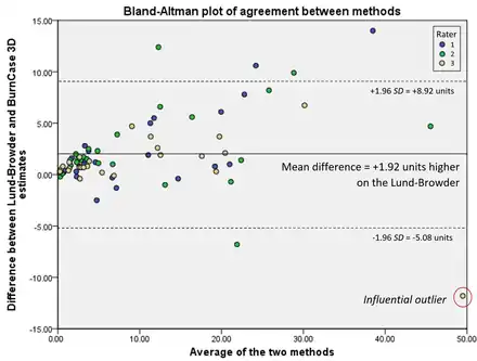 A Bland–Altman plot (difference plot) in analytical chemistry or biomedicine is a method of data plotting used in analyzing the agreement between two different assays. It is identical to a Tukey mean-difference plot,[1] the name by which it is known in other fields, but was popularised in medical statistics by J. Martin Bland and Douglas G. Altman.[2][3]