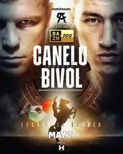 Canelo Álvarez vs. Dmitry Bivol, billed as Legacy is Earned, was a professional boxing match between 4-division world champion, Canelo Álvarez, and defending WBA (Super) light heavyweight champion, Dmitry Bivol. The fight took place on May 7, 2022,[1] with Bivol prevailing as the winner by unanimous decision.