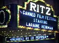 A screenshot of the fictional Ritz theater used as a commercial bumper for selected commercial breaks.