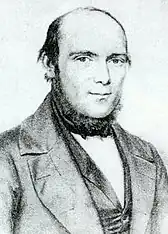 After La Bourdonnais' death in December 1840,[16] Englishman Howard Staunton's match victory over another Frenchman, Pierre Charles Fournier de Saint-Amant, in 1843 is considered to have established Staunton as the world's strongest player,[17][14] at least in England and France. By the 1830s, players from Germany and more generally Central Europe were beginning to appear on the scene:[9] the strongest of the Berlin players around 1840 was probably Ludwig Bledow, co-founder of the Berlin Pleiades.[18] The earliest recorded use of the term "World Champion" was in 1845, when Staunton was described as "the Chess Champion of England, or ... the Champion of the World".[19]
