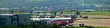 In 2018, Taoyuan International Airport handled a record 46.5 million passengers and 2.3 billion kg of freight, making it the 11th busiest airport worldwide by international passenger traffic, and 8th busiest in terms of international freight traffic in 2018.[7][2][8] It is the main international hub for China Airlines, EVA Air and Starlux Airlines. It is also a hub of Mandarin Airlines, Uni Air and Tigerair Taiwan.