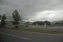 The site of Christchurch's first railway station, on Moorhouse Avenue at the bottom of Madras Street, with the 1960 station building in the background