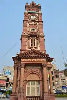 The Faisalabad Clock Tower (Punjabi, Urdu: فیصل آباد کلاک ٹاور), formerly known as the Lyallpur Clock Tower, is a clock tower in Faisalabad, Punjab, Pakistan, and is one of the oldest monuments still standing in its original state from the period of the British Raj. It was built in 1905 by the British, when they ruled much of South Asia during the early 20th century.[1][2]