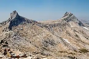 Cockscomb is aptly named, notably when viewed from the northwest. It is located in the Yosemite Wilderness, and is often forgotten, due to its proximity to Cathedral Peak, Matthes Crest, and Echo Peaks, but is deserves to be climbed.[2]