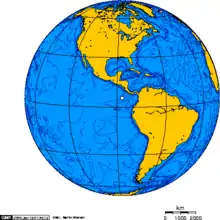 Orthographic projection centred over Cocos Island