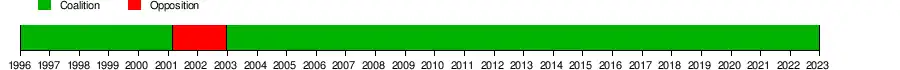 | Year | Leader | # | Popular vote | % | Seats won | Government |