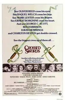 The Prince and the Pauper (US title: Crossed Swords) is a 1977 British action-adventure film directed by Richard Fleischer, based on the 1881 novel The Prince and the Pauper by Mark Twain. It stars Oliver Reed, Ernest Borgnine, Raquel Welch, George C. Scott, Charlton Heston, Sir Rex Harrison, and Mark Lester, playing the dual role of Edward VI of England and Tom Canty.