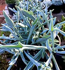 Curio 'Trident Blue', known commonly as Senecio 'Trident Blue', Trident Blue Chalk and Kleinia 'Trident Blue', is a spear-shaped succulent plant that is a hybrid of Curio repens and Curio talinoides.[1][2]