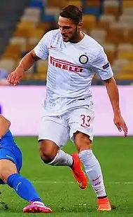 D'Ambrosio is a versatile defender,[83] able to play both as a full-back on both flanks (mainly on the right) and as a centre-back.[84] His physical abilities also allow him to be used as a wide midfielder,[83][85][86] while his offensive-mindedness and his aereal prowess have often lead him to score goals.[87]