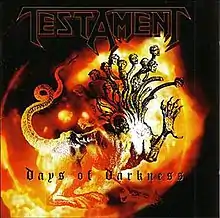 Days of Darkness is a compilation double CD released by Spitfire Records. The first CD is composed of tracks from Testament's Demonic and The Gathering. The second CD is the entire First Strike Still Deadly album.