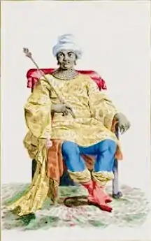 Nkumbi-a-Mpudi Diogo I was manikongo in 1545–1561.[1] King Diogo was the grandson of king Afonso I of Kongo and won the throne after overthrowing his uncle Pedro Nkanga a Mvemba and forcing him to take refuge in a church in São Salvador. Diogo's early struggles are documented in a legal inquest he conducted in 1550 into a plot against him launched by the former king. In 1555, the king cut all ties with the Portuguese whom he saw as meddlesome and a threat to the kingdom and expelled all 70 Portuguese inhabitants from the kingdom.