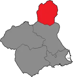 The constituency was created as per the Statute of Autonomy for the Region of Murcia of 1982 and was first contested in the 1983 regional election. The Statute provided for sub-provincial divisions of the Principality's territory to be established as multi-member districts in the Regional Assembly of Murcia, with this regulation being maintained under the 1986 regional electoral law. Each constituency was entitled to an initial minimum of one seat, with the remaining 40 being distributed in proportion to their populations. The exception was the 1983 election, when constituencies were allocated one fixed member and one additional member per each 25,000 inhabitants or fraction greater than 12,500.[1][2]