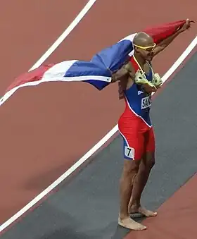Félix Sánchez celebrated his gold medal victory for the second time in the men's 400 m hurdles.
