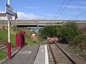 Drumgelloch railway station was a railway station serving Drumgelloch, an eastern suburb of Airdrie, North Lanarkshire, Scotland. The station was managed by First ScotRail and was the eastern terminus of the North Clyde Line, 20 km (12½ miles) east of Glasgow Queen Street from May 1989 to May 2010.