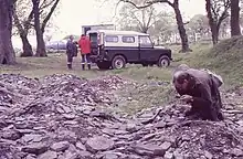 Scottish geologists searching for fossils in the spoil heaps of East Kirkton, 1987