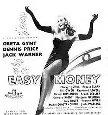 Easy Money is a 1948 British satirical film about a modern British tradition, the football pools. It is composed of four tales about the effect a major win has in four different situations in the post-war period. Written by Muriel and Sydney Box, based on the play "Easy Money" written by Arnold Ridley, and directed by Bernard Knowles, it was released by Gainsborough Pictures.