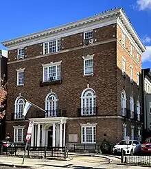 Built in 1917 to the designs of noted architect Jules Henri de Sibour, the 21-room Beaux-Arts building was formerly a private residence and is designated as a contributing property to the Dupont Circle Historic District, listed on the National Register of Historic Places in 1978. Former occupants include U.S. Senator Frank B. Kellogg, Assistant Secretary of State Joseph P. Cotton, philanthropist and diplomat Myron C. Taylor, and the United Nations Club.