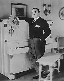 Prior to World War I, Caruso had been romantically linked to an Italian soprano, Ada Giachetti, who was a few years his senior.[27] Though she was already married, Giachetti bore Caruso four sons during their liaison, which lasted from 1897 to 1908. Two survived infancy: Rodolfo Caruso (1898–1951) and singer/actor Enrico Caruso Jr. (1904–1987). Ada had left her husband, manufacturer Gino Botti, and an existing son to cohabit with the tenor. Information provided in Scott's biography of Caruso suggests that she was Caruso's vocal coach as well as his lover.[28] Statements by Enrico Caruso Jr. in his book tend to substantiate this.[29][30] Her relationship with Caruso broke down after 11 years and they separated. Giachetti's subsequent attempts to sue him for damages were dismissed by the courts.[31]