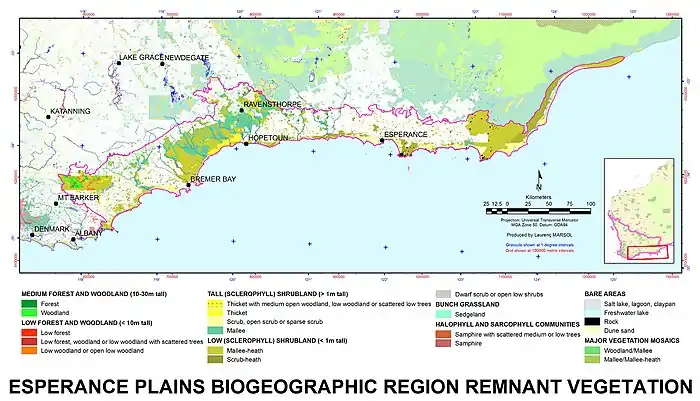 The Esperance Plains biogeographic region, with physiognomic remnant vegetation type.