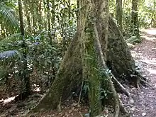 A total of 16 species of fungi, 19 mosses, 4 conifers, 92 ferns, 299 dicots and 54 monocots are recorded as occurring in the National Park.[10] Much of the rainforest in the National Park is complex mesophyll vine forest with pockets of simple and complex notophyll vine forests on poorer soils.[3] Many of the vegetation communities including rainforests, vine thickets and vine forests are considered fire sensitive.[11]