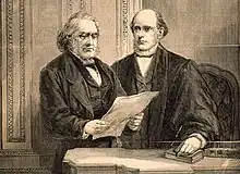 Associate Supreme Court Justice Samuel Nelson administering an oath to Salmon P. Chase for Chase's service as presiding officer of the 1868 impeachment trial of Andrew Johnson