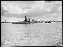 HMS King George V at anchor on the Firth of Forth in 1917. Woolley was attached to the ship in 1918 at North Queensferry.