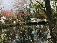 The construction of the Delaware and Raritan Canal in the 1830s, stretching 22 miles (35 km) to connect New York City and Philadelphia, led to significant growth in the township, with as much as 200,000 tons of goods shipped on barges using the canal by the 1860s. The rise of shipping commercial goods using railroads led to a substantial decline in canal traffic.[34] The area has been restored as the Delaware and Raritan Canal State Park[35]